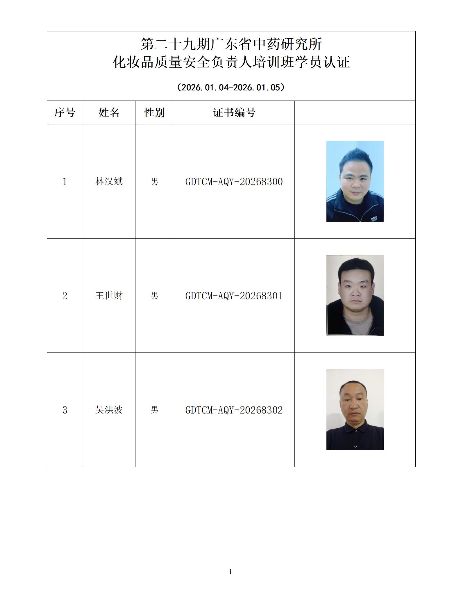 第二十九期广东省中药研究所化妆品质量安全负责人培训班学员认证