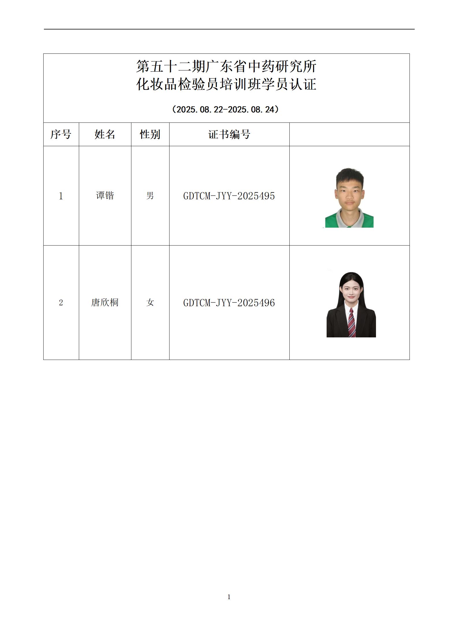 第五十二期广东省中药研究所化妆品检验员培训班学员认证