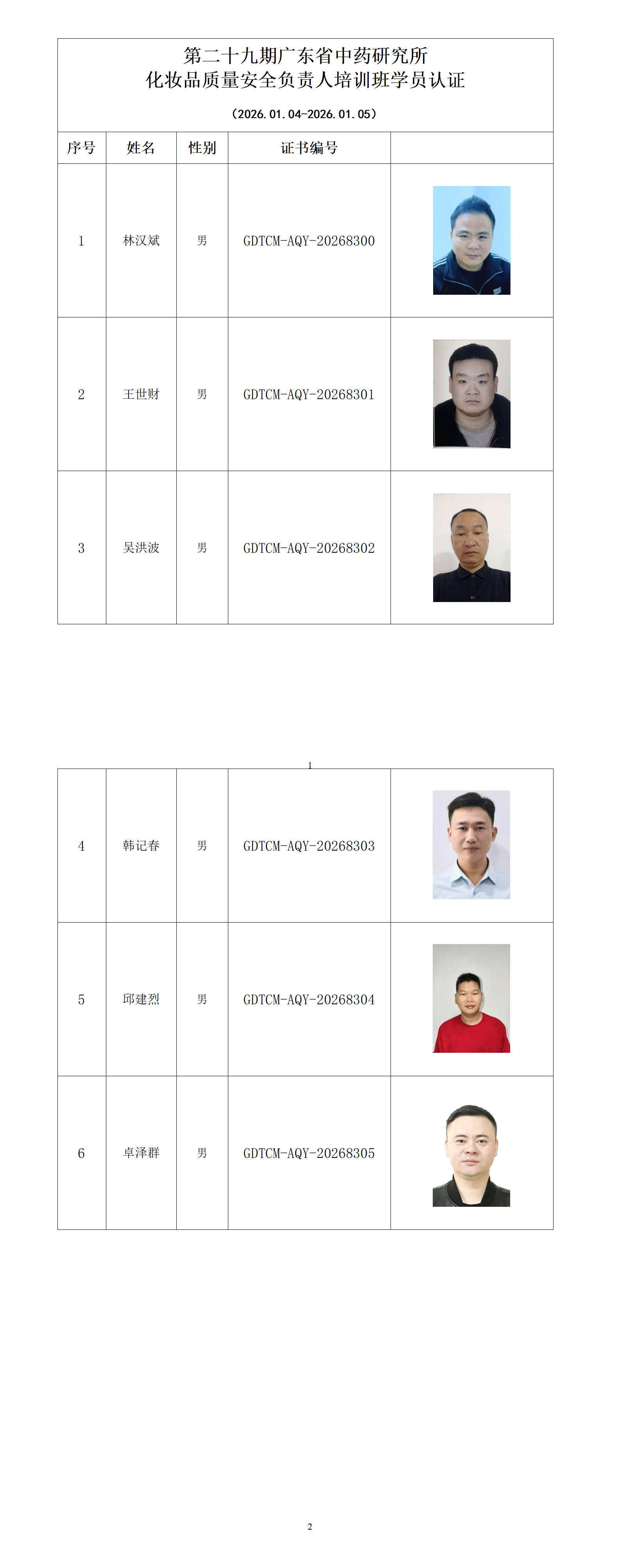 第二十九期广东省中药研究所化妆品质量安全负责人培训班学员认证